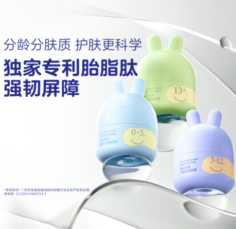 在儿童口腔护理用品研发上,兔头妈妈针对不同年龄段孩子的口腔、人体工学特点研发,旨在针对性、引导性地解决口腔护理问题,深耕新一代奥拉氟防蛀技术。应对儿童肌肤护理问题,其践行「分龄+仿生」领跑中国儿童护肤科学新思路,自研仿生成分Bio-MFGs®仿生乳脂球和Bio-AMPs®仿生胎脂肽均已落地应用,对比上一代植物提取护肤成分,有更好的生物吸收利用率,以及在保湿、舒缓、修护上展现出更强的功效。目前,旗下相关产品常年位于各平台细分榜单前列。
