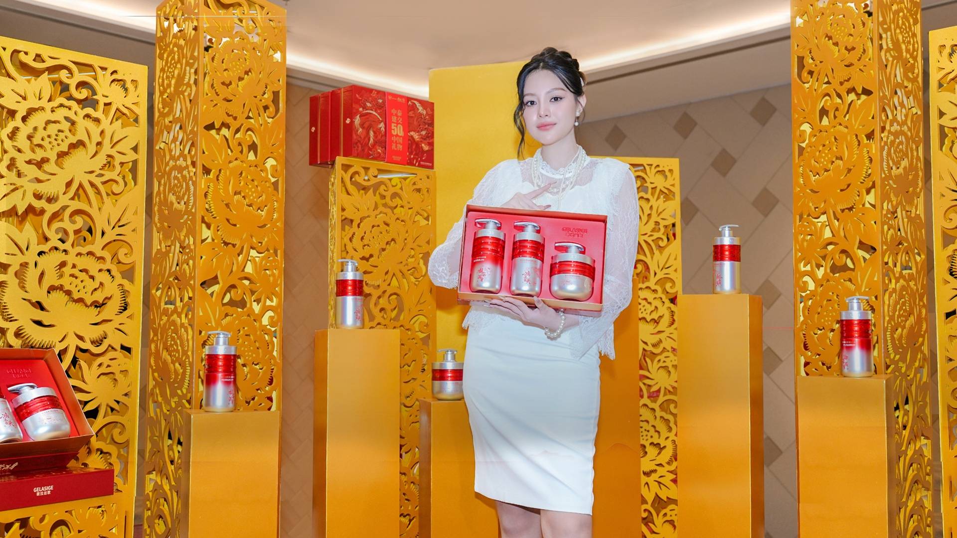 据悉,本次展出的“鸿运当头”礼盒以红金为主色调,将骏马凌风的昂扬气韵与国色牡丹的绽放盛景相融,瓶身题刻“鸿运当头”“馥浴满身”,字字传递新春的美好祝愿。作为“中泰建交50周年中国礼物”,该礼盒承载着中泰两国邦谊永驻、鸿运共承的深厚期许,成为连接两国文化情谊与吉祥寓意的重要载体。